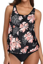 Traje de baño tankini de dos piezas con top de tirantes anchos y diseño holgado tipo blusón, ideal para mayor comodidad y frescura. Su estampado floral tropical aporta un estilo alegre y femenino, mientras que la parte inferior de corte clásico en tono liso asegura un ajuste favorecedor. Perfecto para disfrutar con confianza en la playa o la alberca.