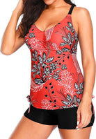 Un diseño que combina frescura y estilo. La parte superior presenta un estampado floral en tonos rojo y blanco, con tirantes cruzados ajustables en la espalda que brindan soporte y un toque moderno. El short negro aporta comodidad y seguridad para que disfrutes cada momento en la playa o la alberca.