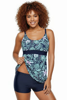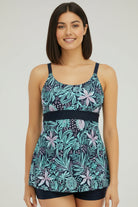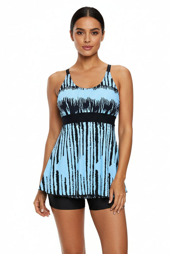 Diseño tipo tankini con top amplio de caída ligera que aporta comodidad y movimiento. Los tirantes ajustables brindan soporte suave, mientras que la cintura marcada define la silueta sin ajustar de más. El estilo cubre de forma favorecedora y se complementa con shorts cómodos para mayor seguridad y libertad al caminar, nadar o relajarte.