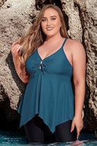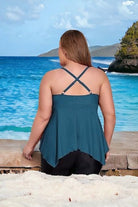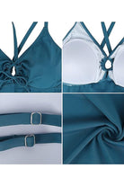 Disfruta de elegancia y comodidad con este traje de baño tankini short. Diseñado con copas fijas, suaves y acolchadas, ofrece soporte natural y libertad de movimiento. Su escote en v y tirantes fijos ajustables aseguran un ajuste refinado, mientras que su diseño sólido y espalda regular aportan un estilo clásico y sofisticado para cualquier ocasión junto al agua.