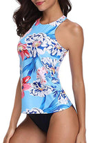 Traje de baño tankini de dos piezas con top de escote alto y diseño deportivo que ofrece mayor cobertura y soporte. Su espalda con corte abierto y cierre en el cuello le da un toque moderno y cómodo. La parte inferior de corte clásico completa el conjunto, ideal para combinar estilo y funcionalidad en la playa o la alberca.