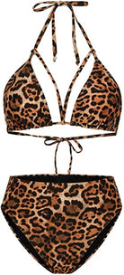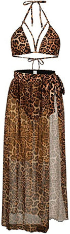 Traje de baño de 3 piezas con diseño de tirantes dobles en el top tipo triángulo y falda tipo pareo incluida. La parte inferior es de cintura alta para mayor comodidad y soporte, creando un look moderno y atractivo para la playa o la alberca.