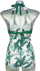 Traje de baño de dos piezas estilo bikini alto con control de abdomen. El top cuenta con tirantes ajustables y detalle de moño al frente que aporta un diseño femenino y cómodo. La parte inferior de cintura alta tiene drapeados estratégicos que ayudan a estilizar la figura y brindan un ajuste favorecedor. Ideal para disfrutar en la playa o la alberca con estilo y seguridad.