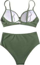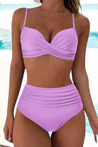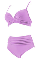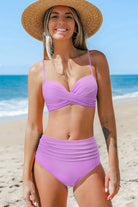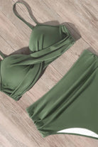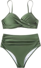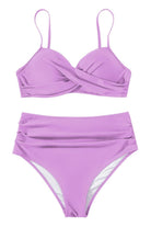 Bikini corte alto con tirantes ajustables y top cruzado. La parte inferior tiene drapeados en el abdomen que brindan un efecto estilizado y favorecedor. Diseño clásico y elegante, ideal para disfrutar con comodidad y confianza en cualquier ocasión junto al agua.
