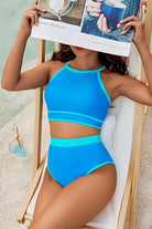 Traje de baño con diseño deportivo, top de corte alto que brinda soporte y comodidad, acompañado de tirantes cruzados en la espalda para un ajuste firme y moderno. La parte inferior de tiro alto estiliza la figura y ofrece mayor cobertura, logrando un balance perfecto entre estilo y confort para disfrutar en la playa o la alberca.