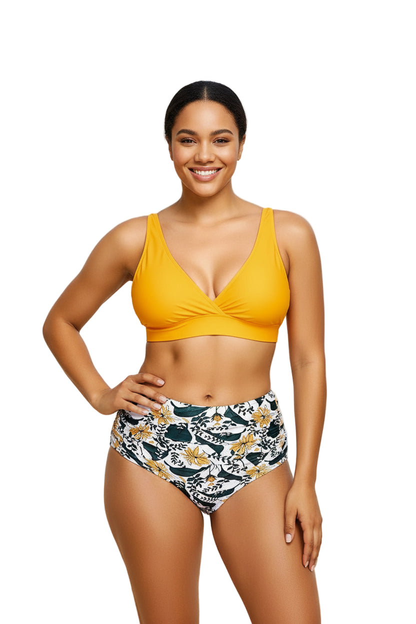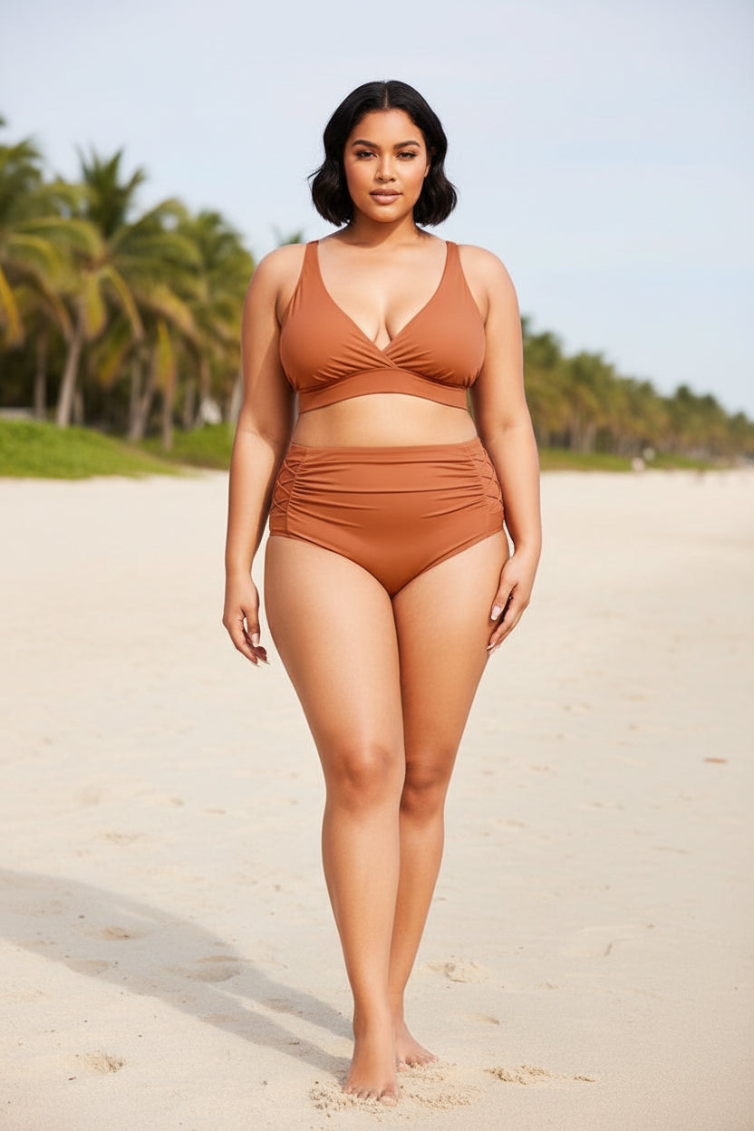 Traje de baño diseñado para brindar soporte, comodidad y un ajuste favorecedor. Su top con corte envolvente ofrece buena sujeción y realce, mientras que el bottom de talle alto estiliza la cintura y proporciona mayor seguridad. Un conjunto pensado para moldear, disfrutar y sentirte increíble en cada movimiento.