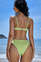 Traje de baño de dos piezas con top de tirantes ajustables y escote en V estructurado que realza el busto. La parte inferior de cintura alta ofrece un ajuste favorecedor y cómodo, ideal para resaltar la silueta con estilo moderno.