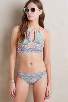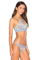 Este bikini de dos piezas combina elegancia y estilo con un diseño inspirado en la tradicional talavera. Sus tirantes entrelazados en la espalda ofrecen un ajuste cómodo y seguro, resaltando la sofisticación del conjunto. Perfecto para quienes buscan un traje de baño único que fusiona arte y moda de forma distinguida.