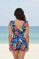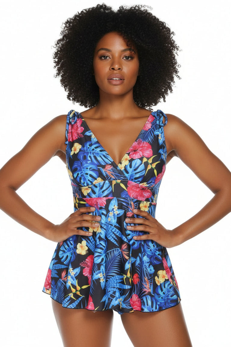 Diseño tipo tankini con escote en V y tirantes ajustables con lazo que aportan un toque delicado. El top tiene una caída amplia y fluida que estiliza la silueta, mientras que la cintura marcada crea un ajuste favorecedor. Se complementa con shorts suaves que brindan libertad de movimiento y comodidad en cada actividad acuática. Su corte equilibrado combina frescura, soporte y ligereza.
