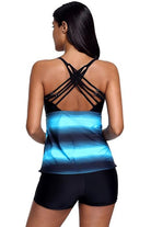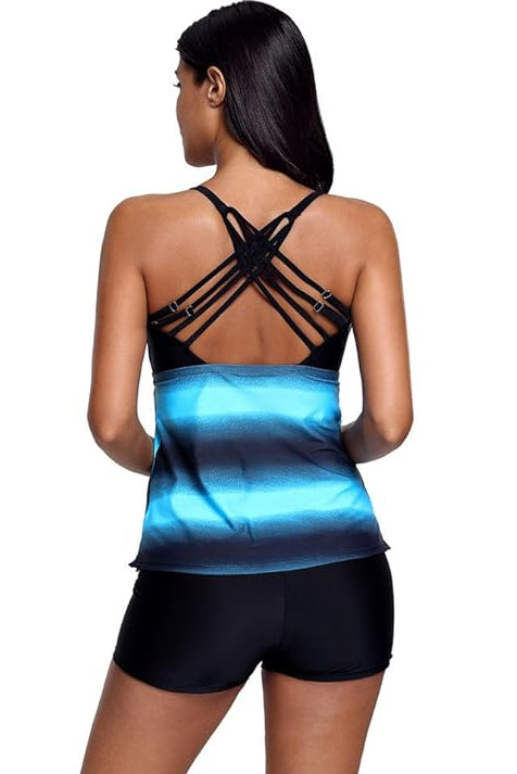 Traje de baño tipo tankini con short . Diseño femenino y elegante. Los tirantes delgados y la espalda con tiras cruzadas ajustables brindan un estilo moderno y un soporte seguro.