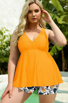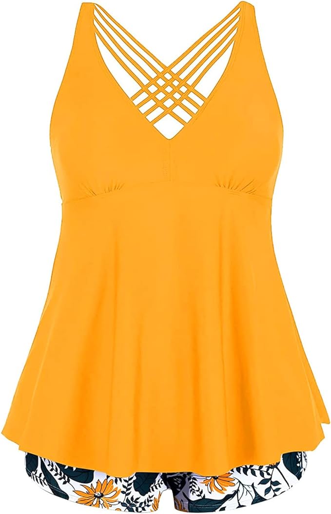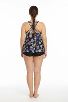 Diseño tipo tankini con escote en V y caída amplia que aporta comodidad y movimiento. La espalda destaca por sus tiras entrecruzadas, ofreciendo un ajuste moderno y estable. El top fluido se complementa con shorts prácticos que brindan libertad al caminar, nadar o relajarte. Su corte equilibrado combina soporte suave, frescura y una sensación ligera en todo momento.