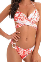 Este bikini de corte regular combina elegancia y comodidad, con copas extraíbles suaves y acolchonadas que ofrecen soporte sin usar varilla. Su escote en V realza la figura, mientras que el tirante halter aporta un toque sofisticado. El diseño tie dye aporta un estilo moderno y único, y la espalda con cierre crisscross asegura un ajuste perfecto y estilizado. Ideal para quienes buscan un equilibrio entre funcionalidad y tendencia.