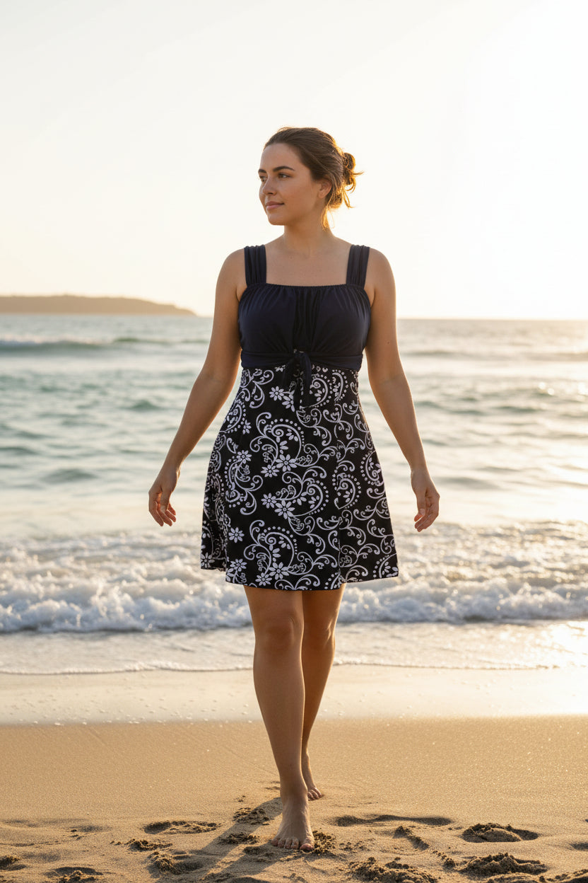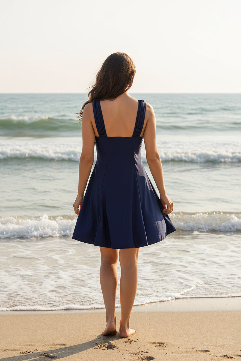 Este traje de baño tipo vestido de una pieza-short, ofreciendo una cobertura cómoda y segura sin sacrificar estilo. Diseñado para brindar soporte y libertad de movimiento, es ideal para diversas actividades acuáticas y deportivas. Su confección garantiza un ajuste favorecedor y funcionalidad en una sola pieza práctica y moderna.